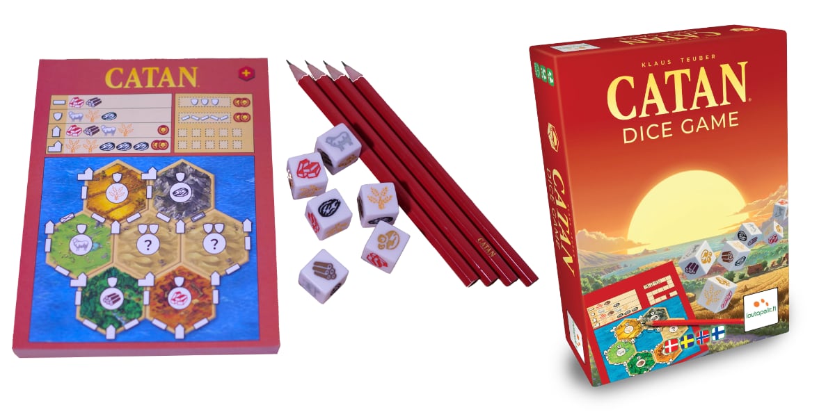 Catan Noppapeli yhdistää klassisen Catan lautapelin Yatzy-noppapelin tuttuun pelimekaniikkaan. Tuloksena on peli, joka on nopea pelata ja helppo oppia, mutta silti täynnä merkittäviä valintoja.