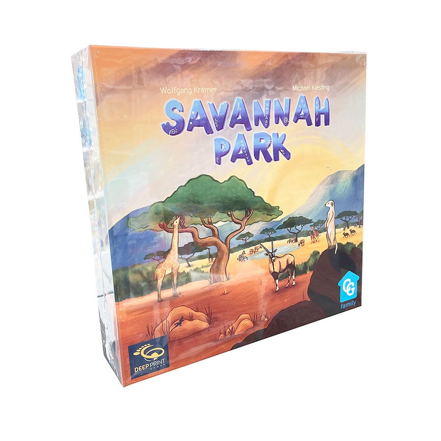 In Savannah Park, you each run your own wildlife park, and your goal is to group animals with their own kind — but everyone takes turns deciding what to move, so you might not be able to shuffle animals into the right spaces.